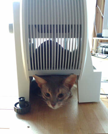加湿器にもぐりこむ小鉄・・・何がしたいんや?