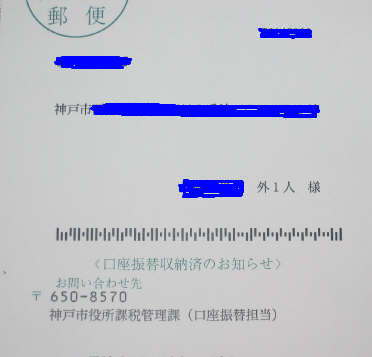 “固定資産税・都市計画税 納税通知書”と“口座振替納税済通知書”