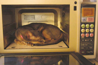 湯気がこもるからと しばらく電子レンジの扉を開けてたら すかさず