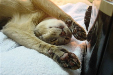 ああ伸び伸び・・・お母ちゃん、ゴハンまだ~?